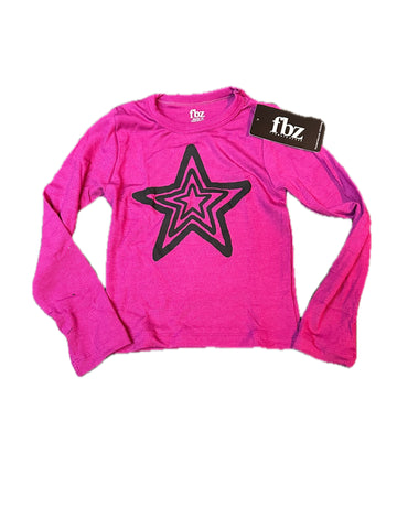 New!! Magenta ribbed long sleeve top with black star design from Flowers By Zoe available at Glamour Girlz Central fashion boutique for girls and trendy tweens clothes and unique gifts